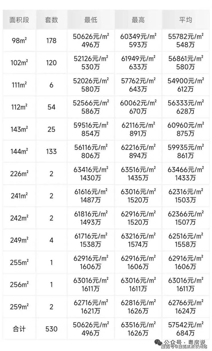 折后均价5.22万/㎡,折后单价4.58-5.72万/㎡,其中3房总价530万起,4房总价543万起,6房总价1212万起。