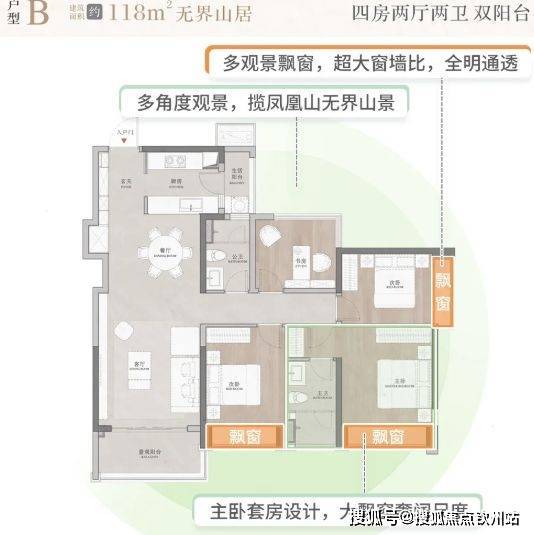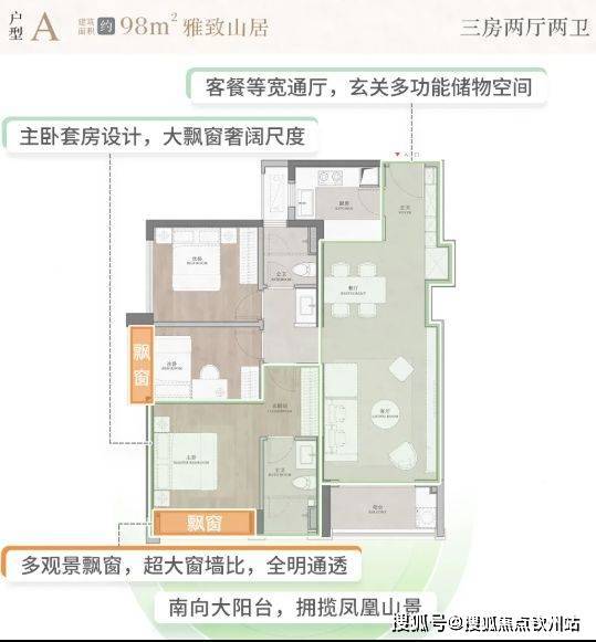 景观优势:拥有三面凤凰山山景,一面高层瞰海的山、海、谷景观优势,南北大中轴观景面排布,可欣赏开阔的山景,高楼层部分户型还能远眺唐家湾海域,同时欣赏山景和海景。