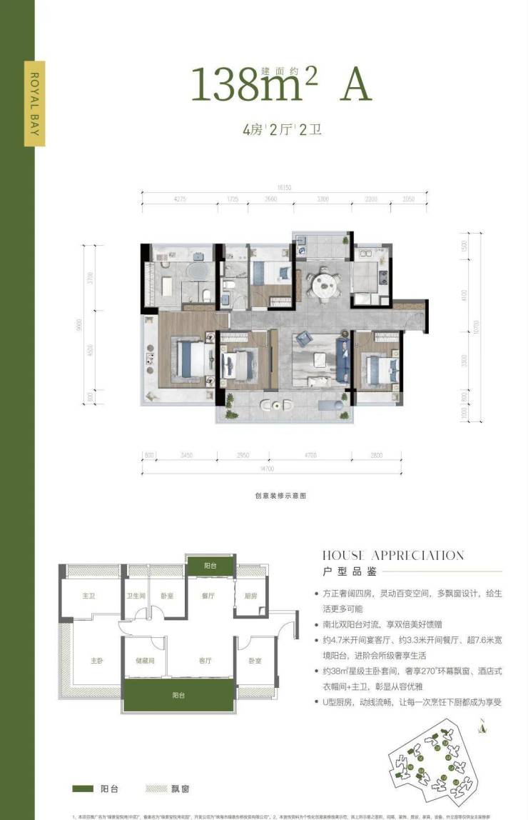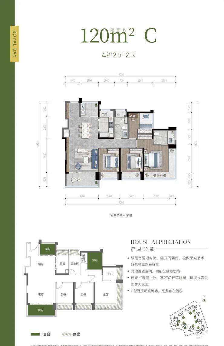 户型亮点:奢阔舒居四房,舒适主套设计,享独立衣帽间和卫浴