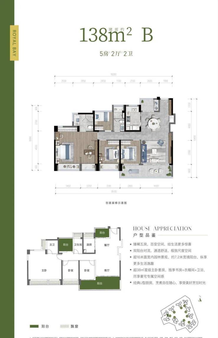 户型亮点:约 38 ㎡星级主卧套间,奢享 270°环幕飘窗、酒店式衣帽间+主卫