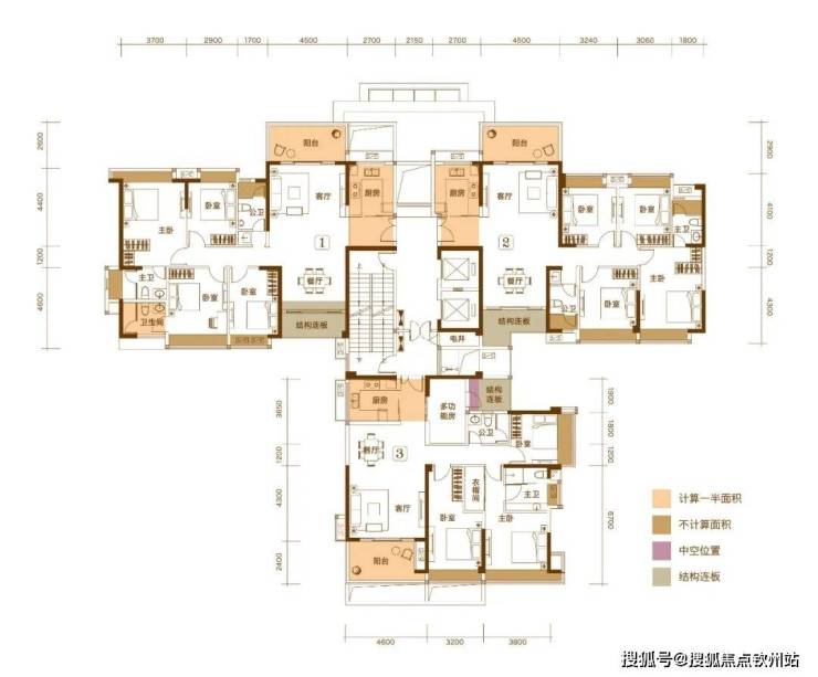 01户型建面约144㎡的四房,称得上是楼王中的“楼王”产品。