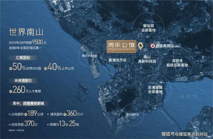 项目雄踞深圳经济主引擎腹地——南山科技园之上,5大全球总部基地核“芯”居住区,西丽高铁新城枢纽发展辐射,共享湾区繁荣。