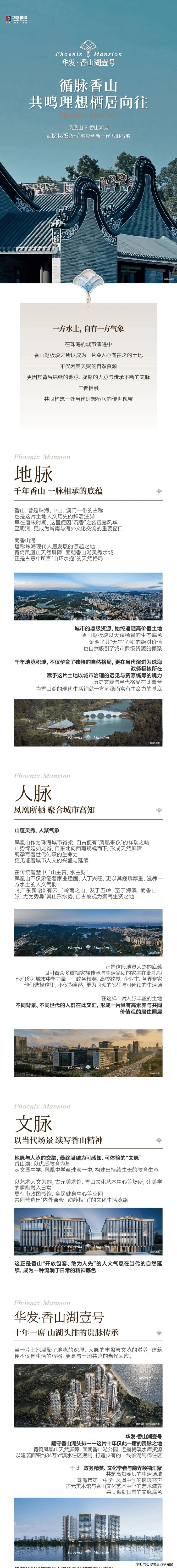 · 基本信息:项目位于珠海香洲区健民路北侧、旅游路东侧,是香山湖公园头排住宅。总占地 7.93 万㎡,总建面约 34.3 万㎡,容积率 2.72,绿化率 35%,规划 14 栋塔楼,共约 1300 户纯商品房。由华发集团全资开发,华发物业提供服务,其具有一级资质。