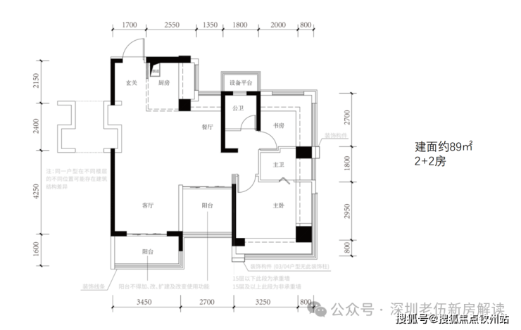 一、建面约89㎡户型:龙华“最能装”小户型