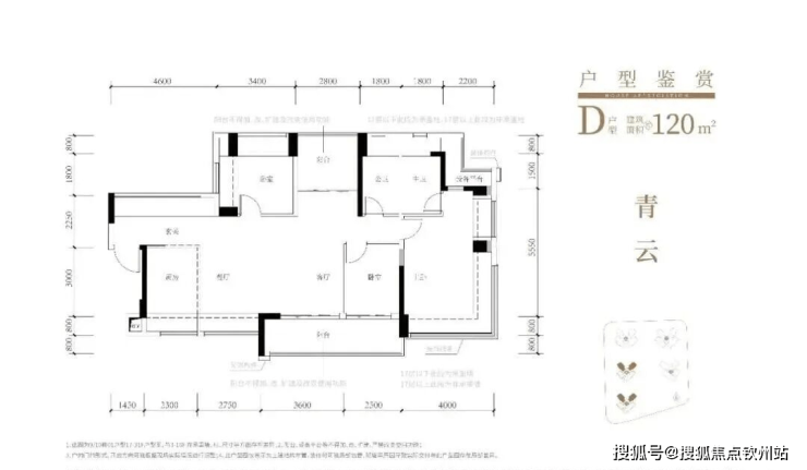 119㎡的4房2厅2卫,折后总价615-667万/套,单价约5.15-5.51万/㎡。