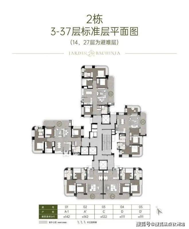 整个湾啟紫荆府项目占地面积14953平方,共有3栋住宅楼,总层高36-37楼,主力户型为96、111、121、122、142平,共规划485套纯商品房。