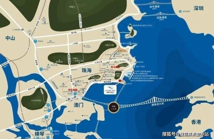 “纵观珠海交通体系以吉大为点向外铺展蔓延,情侣路北至老香洲、唐家,南至拱北、夏湾,覆盖全主城区;反观万菱·情侣湾1号,处于交通枢纽之地,可辐射九洲港码头、广珠轻轨拱北站、港珠澳大桥接驳点;通往市区、深圳、澳门、香港等地,区位显赫,扼守城市交通命脉。汇聚城市交通枢纽,雄踞粤港澳大湾区城市圈核心地段。”