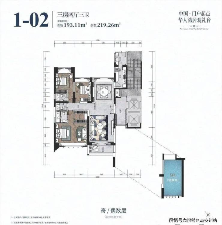 高使用率大平层豪宅,3.3米奢华层高,非凡客厅开间,尺度超然海上