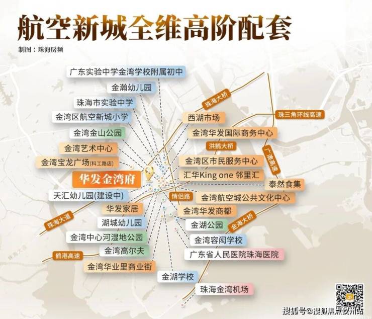 以华发金湾府为圆心,延伸1km生活半径内,行政、商业、生态、教育、休闲、医疗等高阶资源一应俱全,是金湾发展最迅猛,也是最醇熟的所在!