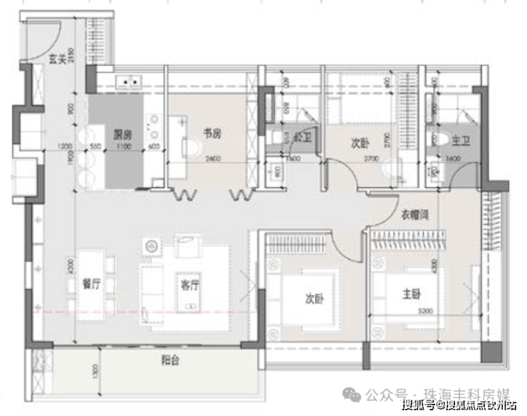 主卧套房设计,独立衣帽间;