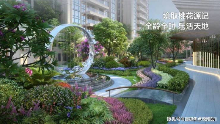 全龄全时 乐活天地:以桃花源记为园境蓝本,以闹市-叩山-寻幽-觅趣-入谷为景观流线,营造世外桃源式的入谷寻幽意境,于城市喧闹中自有一番雅园静谧。更以多元生活场景嵌入社区景观中,沿阶花池、雕塑水景、休闲长廊、屋顶花园,并打造专属儿童天地,打造全龄段的家庭乐活天地。