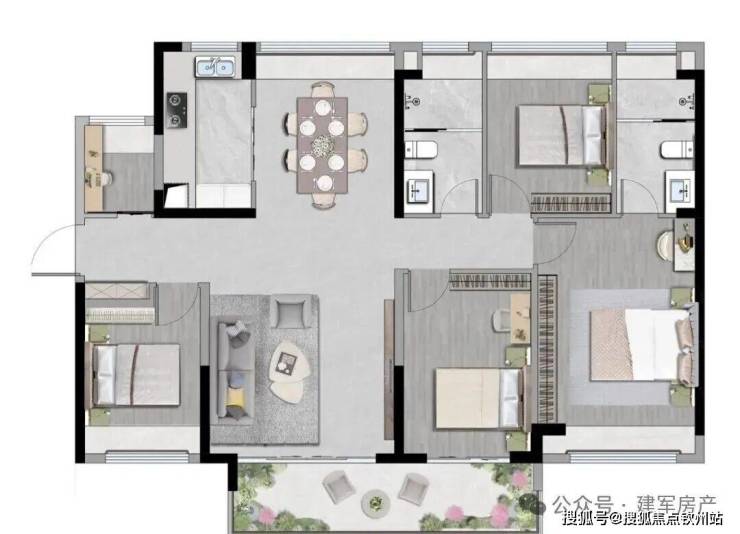 约6.5m南向宽景阳台,环幕视野 四季入怀餐客一体,无界融合 盛载多元生活想象全明通透,推窗即揽山境阳光清风流转百变户型,多元实用 二胎家庭成长空间