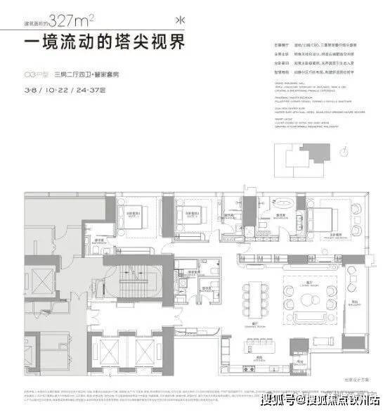 总楼层:公寓约300户,58层,层高3.6--3.9米