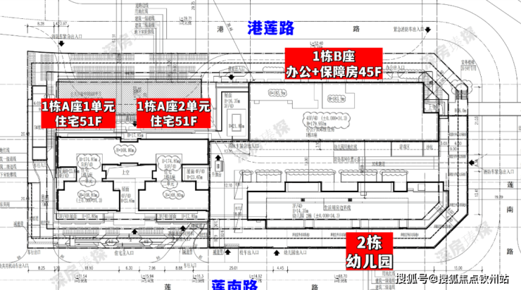 莲塘金岸里,由兆丰源公司打造,其背后股东主要是2家珠宝公司,总占地面积约0.82万㎡,总建筑面积约11.59万㎡,计容建筑面积约8.66万㎡,容积率9.62,绿化率40%,共由2栋45-51层高住宅组成,其中1栋A座1单元/2单元住宅51F,1栋B座办公+保障性住房45F,2栋是1所幼儿园。