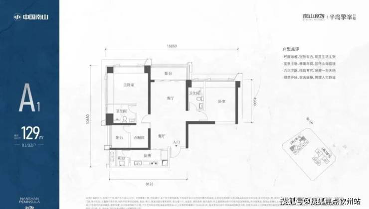 A1有两条腿,分别1-1栋01/02,主朝向是西北向,双龙抱珠格局。