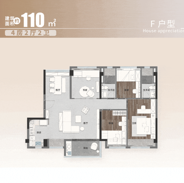 约20㎡主卧套房,自带卫浴、衣帽空间,让小家功能更加丰富。
