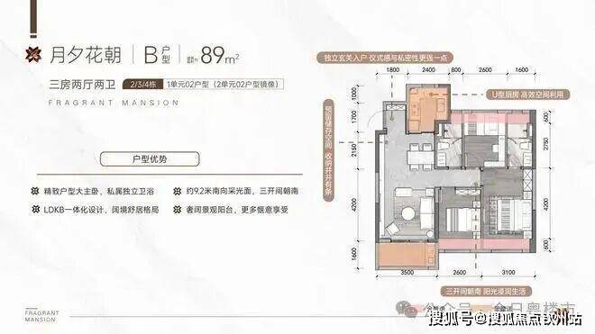 (1)89㎡三居室:户型方正,动静分离,适合刚需家庭。