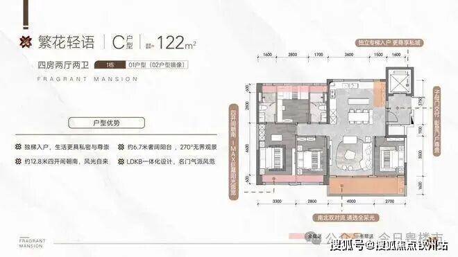 (3)122㎡四居室:四室两厅两卫设计,空间布局合理,适合改善型家庭。