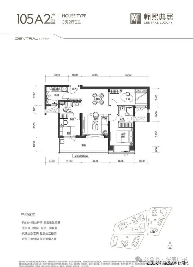 户型面积:主力户型为新规后建面约105-140㎡的3-4房,使用率达85%-90%。
