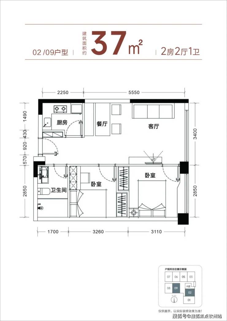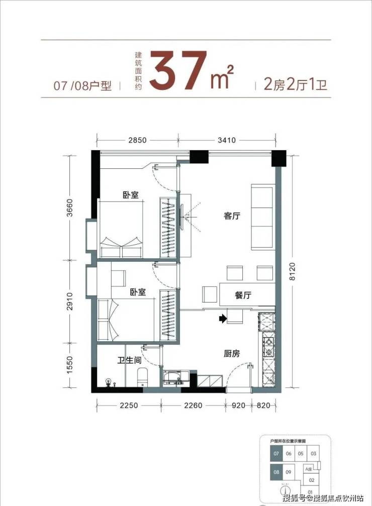 【产品面积】约37㎡小两房或者小三房(实际套内使用面积接近54㎡)