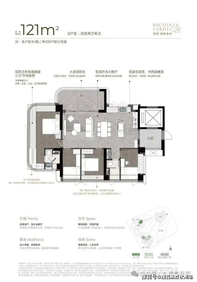 双龙抱珠户型,书房分布于客厅另一侧,且难得是双面采光+270°景观视野。主卧南北通透,且拥有十分开阔的景观面。贯通式阳台联通客厅以及靠近动区的次卧,实现长观景阳台