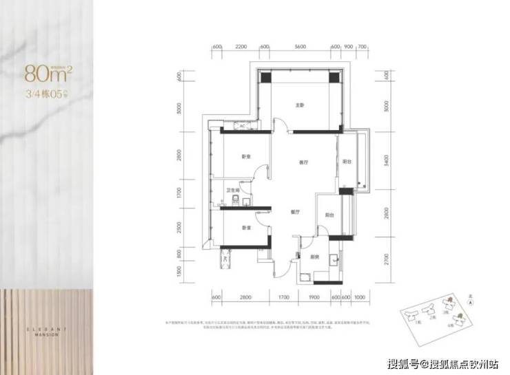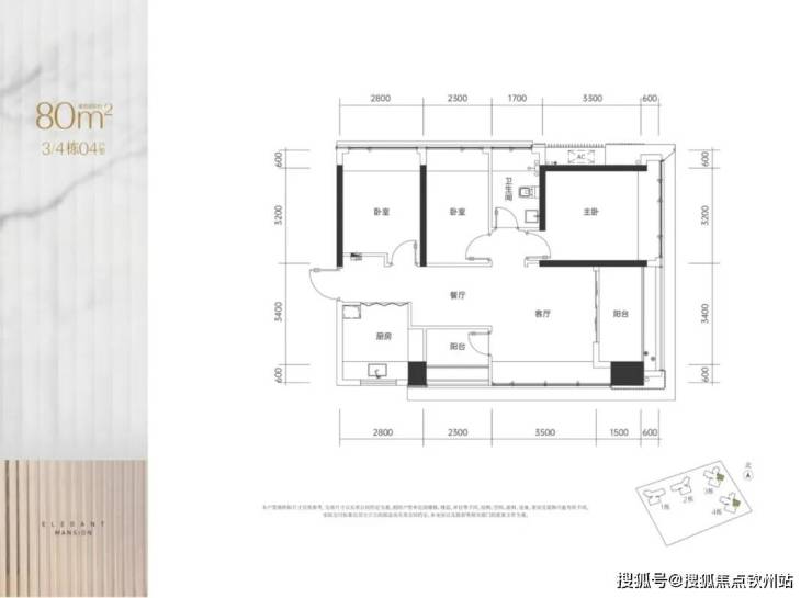 (2)80㎡竖厅户型:客厅4米开间,LDKB一体化设计,主卧15.8㎡,次卧9.07㎡,赠送面积后得房率约100%。