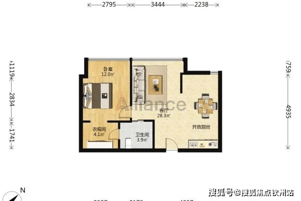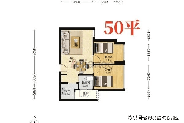 公寓90平户型一房一卫: