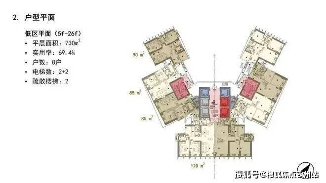 整个楼层是蝶形平面布局,罕见的超板楼设计,实现每一户景观价值和通透价值最大化。