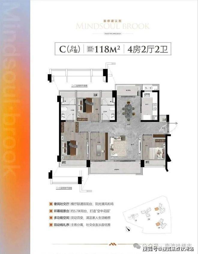 户型产品:建筑面积约91-173㎡三至四房