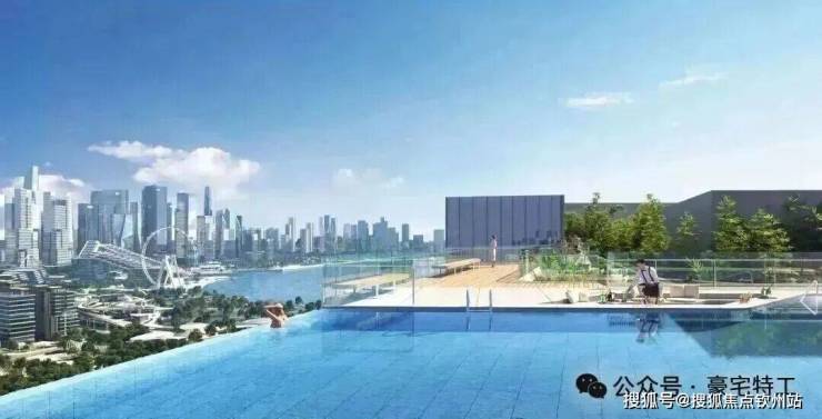 「云端泳池」云端屋顶空间营造天际观海泳池、空中步道、草坪观影、观景吧台等,同频城市峯层的品味共识,塑造云端艺术领地,在此尽享舒适。
