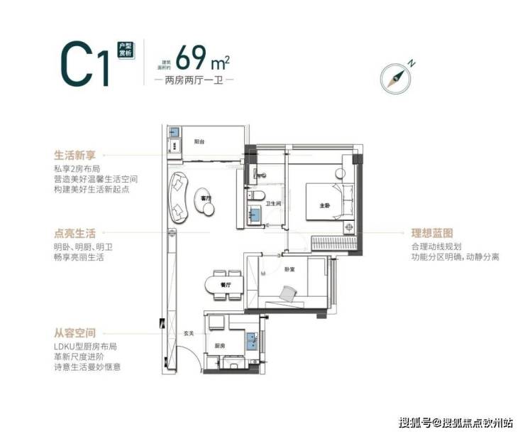 【69㎡2房2厅1卫】