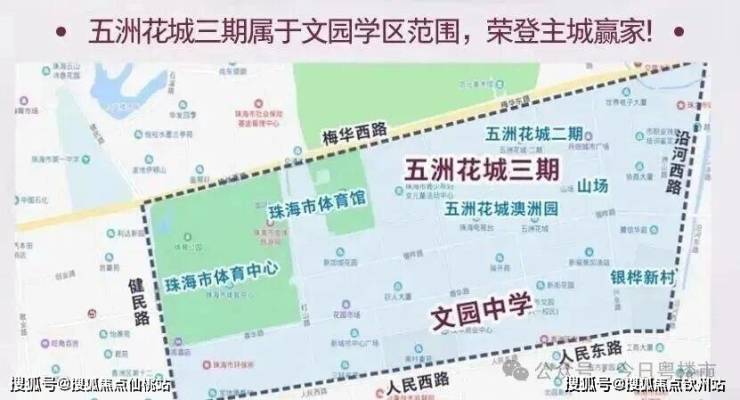 香山学校就在五洲花城二期对面,虽然不是能稳居珠海第一档的小学,但也是前列了。即将开建的文园小学位于五洲花城三期对面。