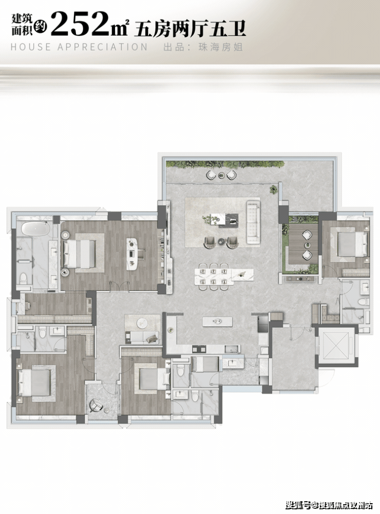 户型:主推 120-255㎡的四至五房改善型大户型。如 120㎡四房采用 LDKGB 一体化设计,客厅连 6.8 米错层挑高露台;143㎡五房拥有 270 度环幕玻璃幕墙,3.15 米层高;255㎡楼王户型自带独立 “空中花园”。