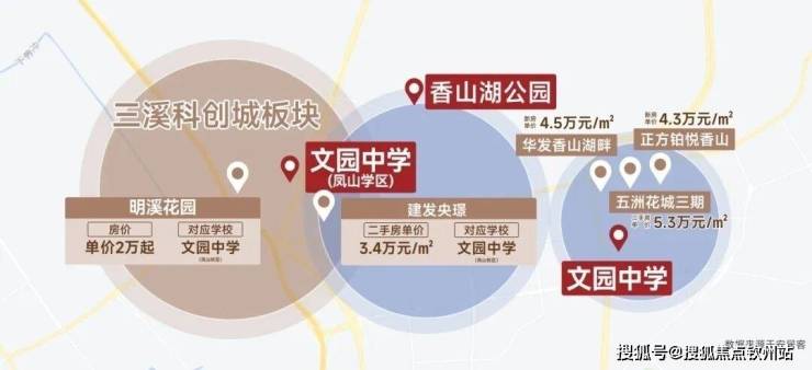 香山湖半径3公里,香山湖→梅溪→三溪,4万+→3万+→2万,房价梯度明显;