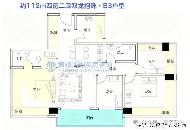 项目规划为纯四房产品,户型面积约105-188㎡,全部为精装修交付。