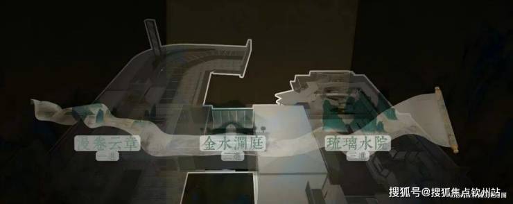 一进漫卷云章,苍劲古松迎客而立,九级石阶,延伸恢弘归家仪制。二进金水澜庭,玲珑金水桥,与天然石壁叠水相映成趣。三进琉璃水院,名亭名联如画铺展,飞虹溪谷窥见名园意趣。“一园三进,游园十乐”,层层递进礼序轴线,铸造无出其右的归家仪式感。