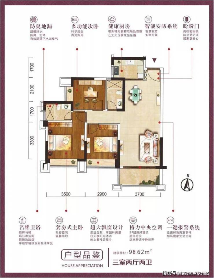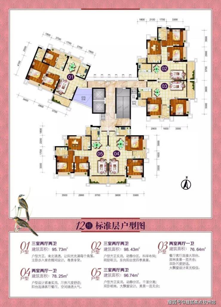 (1)三居:86-99㎡,户型方正、动静分离,采光充足,主卧带卫,干湿分离。
