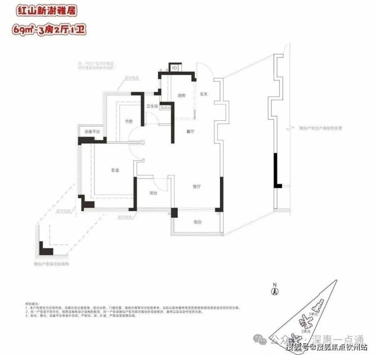 龙华区红山板块【红山新澍雅居】计划2026年1季度取证入市,面积有69平的2+1房1卫,78-84平的3房2卫,99平的4房2卫户型,共332套房源,户户朝南,总高16-25层。