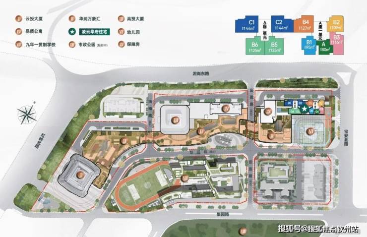 综合体具体包含高端商务写字楼(云投大厦)、研发办公楼(高投大厦研发办公楼)、商务公寓、云端住宅(凌云华府)、华润万象汇商业、配建幼儿园,以及坐拥家门口九年制学校。