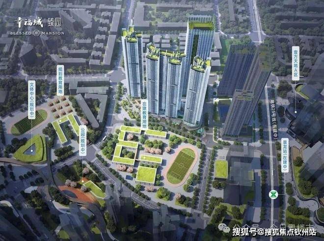总占地面积约1.23万㎡,总建筑面积约15.08万㎡,计容建筑面积约10.85万㎡,容积率8.31,绿化率40.01%,共由2栋41-59F高的住宅组成,其中3栋住宅41F,4栋公共租赁住房59F,5栋办公楼30F,2栋是1所9班制幼儿园。