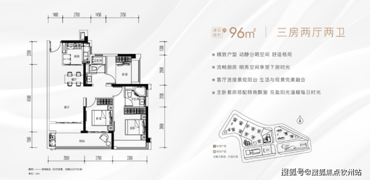 从户型来看,首推建面约96-142㎡3至4房,可以看到,户型面积段趋于刚改、改善人群,在一定程度上,保证了居住的“纯净感”。