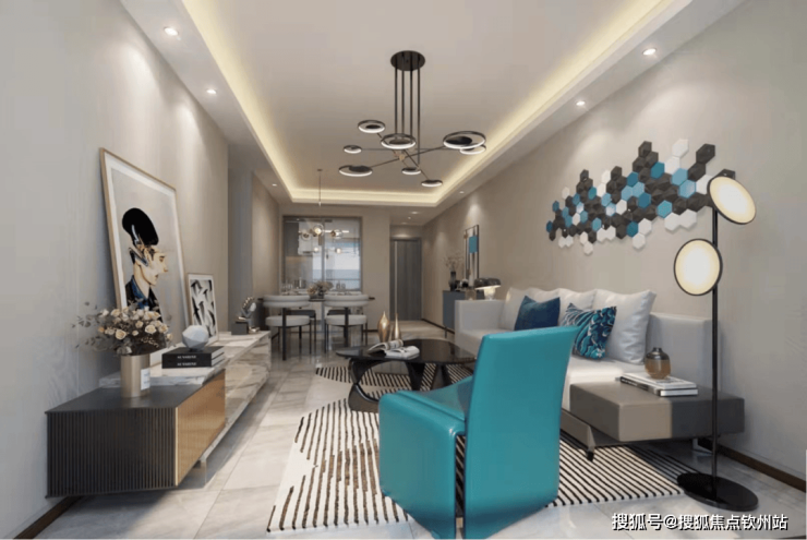 1、横厅设计,餐客厅一体布局,完美利用每一寸空间