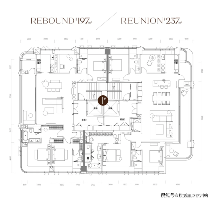 今年首开1栋的小高层住宅,有42套197-237㎡四房大平层。