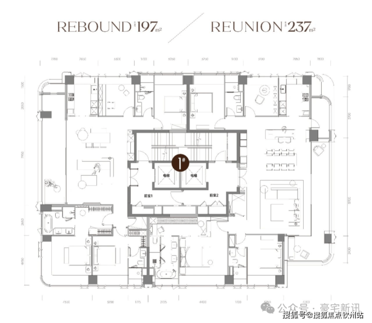 此次推出42套197平与237平大四房户型,专梯专户。