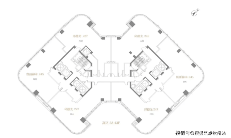 方胜纹双核心筒的设计使得整栋建筑更加高效和私密,并实现了双专梯电梯入户,为塔尖人群高效的工作和私密的生活而服务。转角处曲线设计,拓宽了整个建筑界面,使得建筑拥有270°转角无柱开放式观景视野。是塔尖人群拥揽深港的极佳观景台,足以盛放您帷幄城市的雄心。