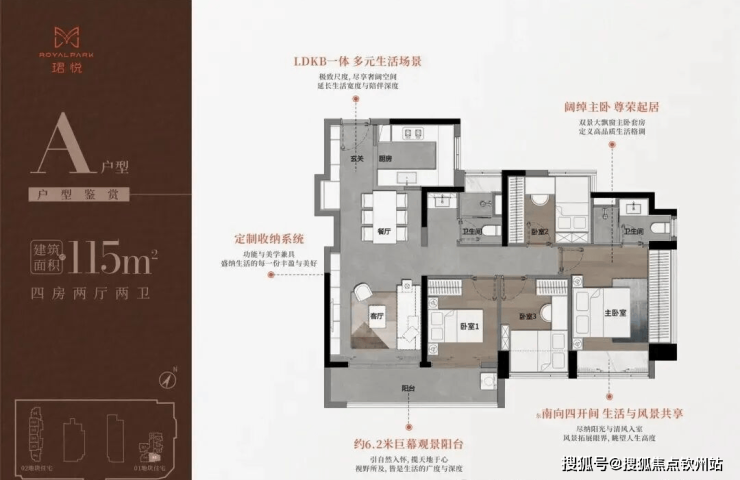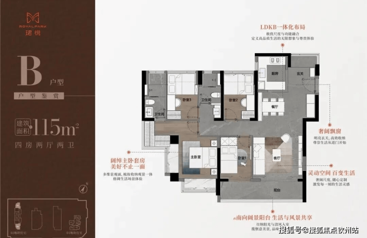 115㎡奢阔四房同样亮眼,仅 85 套可售:A 户型东南向 29 套,B 户型 56 套,均为通透户型,使用率 92%,四房设计满足多代同堂或三孩家庭需求,无论是老人住、孩子住,还是打造书房、衣帽间,都有充足空间。