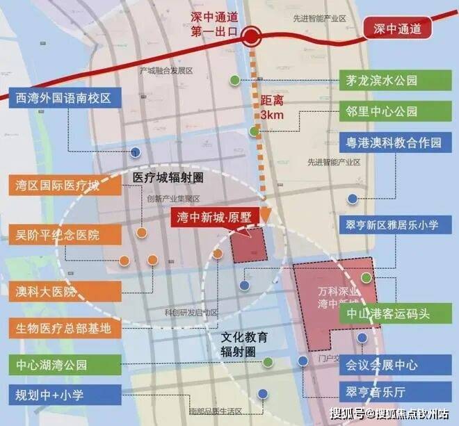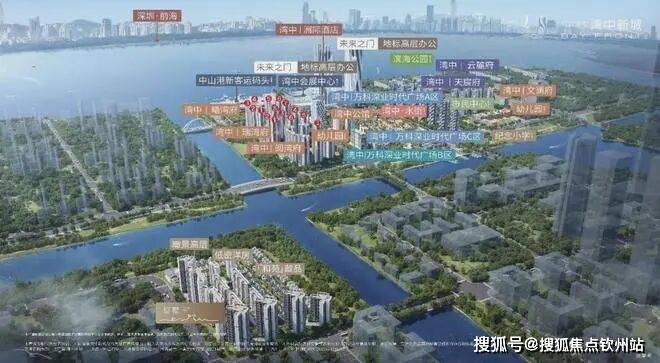 中山-万科深业·湾中新城占地面积约1003亩,由万科+深业两大国企联手打造,计划总投资规模约270亿元,布局联检码头、会展中心、商业街区、写字楼、公寓以及滨海住宅等复合型业态。