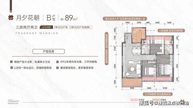 (1)89㎡三居室:户型方正,动静分离,适合刚需家庭。