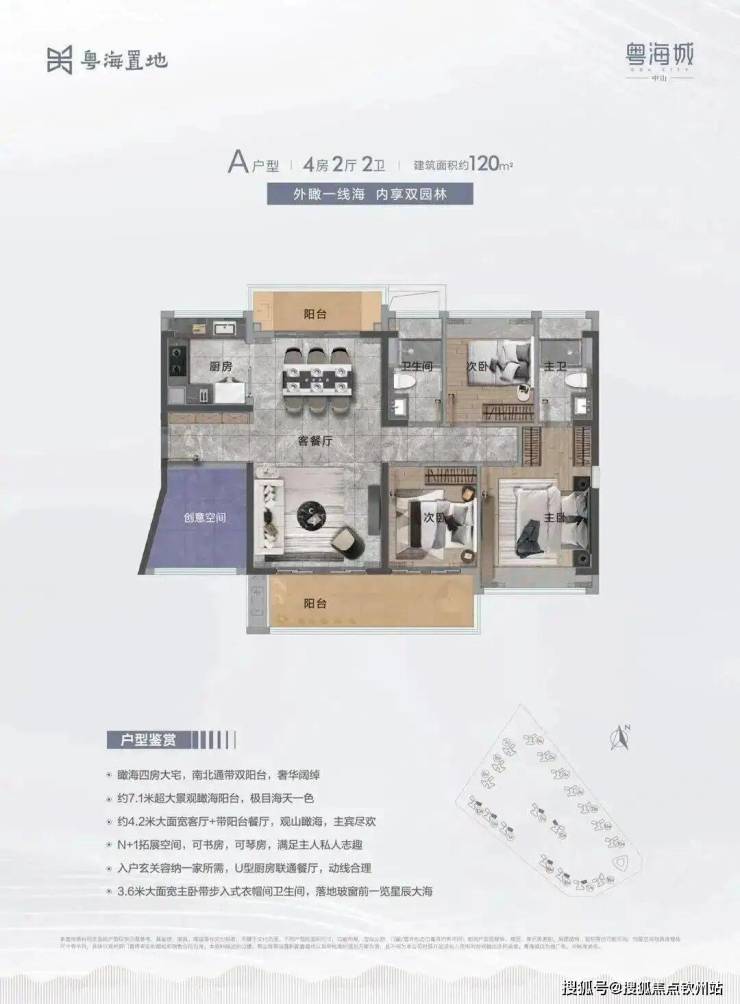 A户型:建面约120m² 4房2厅2卫