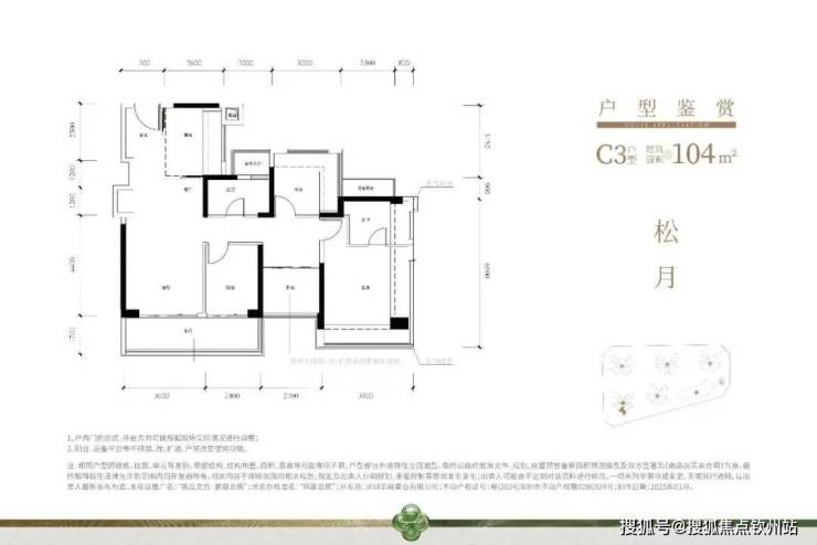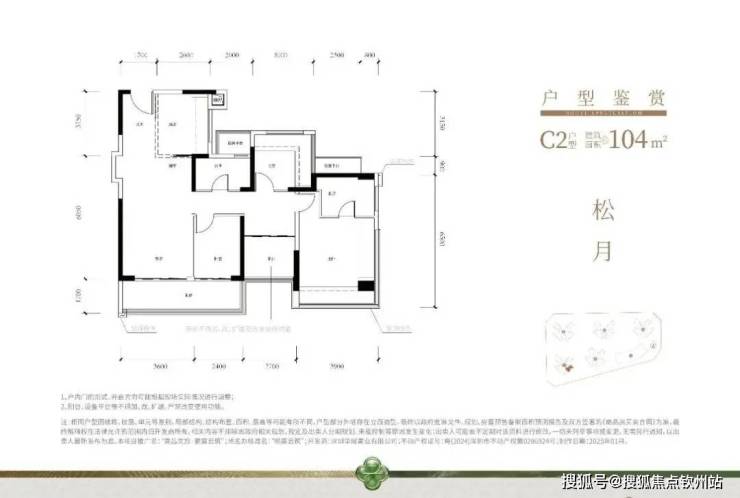 104㎡的4房2厅2卫,设计的是竖厅格局,进门入户玄关,客厅3.6米开间,LDKB一体化,S墙设计预留冰箱卡槽位,四开间朝南,主卧+1个次卧270°飘窗,客厅连接次卧出6米长大阳台,L型厨房,得房率约79.45%(不含赠送),西南或东南朝向。